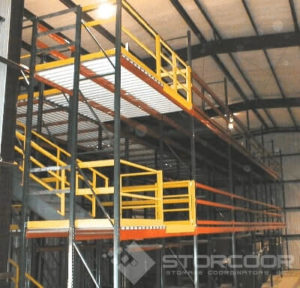 Storage Coordinators, Inc. have designed and installed shelving mezzanines up to 27′ high. Mezzanine storage systems are an excellent choice for increasing storage capacity while maintaining floor space. These systems take advantage of vertical space – ideal for adding modular offices.
